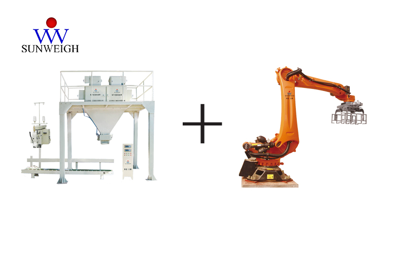 減少人力,智能化、自動(dòng)化是現(xiàn)代各個(gè)行業(yè)不論大小企業(yè)都在努力追求的生產(chǎn)管理愿景。人工的包裝碼垛對(duì)很多行業(yè)的散料計(jì)量堆垛物料倉庫管理等實(shí)在是件頭疼的事,物料轉(zhuǎn)移占地空間大,效率低,人工成本也較高。因此全自動(dòng)包裝碼垛生產(chǎn)線的需求日益凸顯。然而對(duì)于實(shí)力尚不夠或者資金不充足的中小起來也來說全自動(dòng)包裝碼垛生產(chǎn)線的資金投入實(shí)在負(fù)擔(dān)不起。那么能夠節(jié)省大部分勞動(dòng)力同時(shí)比全自動(dòng)包裝碼垛的資金投入少很多的半自動(dòng)包裝+機(jī)械手碼垛無疑是中小企業(yè)的最佳選擇。